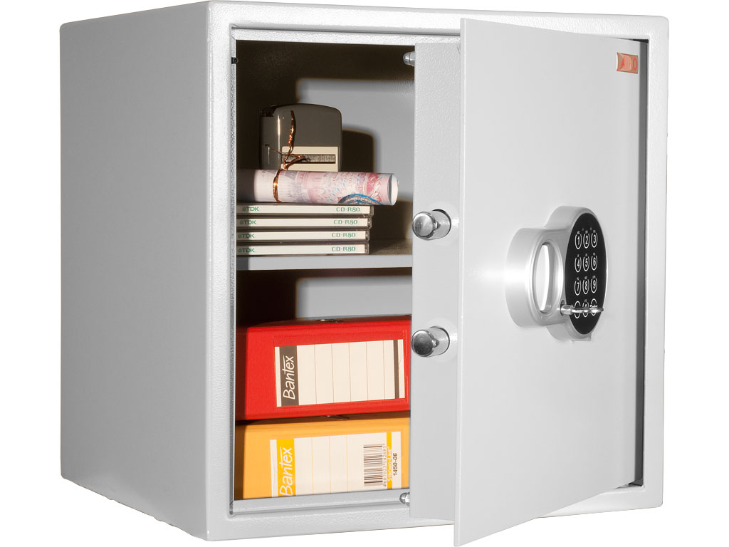 Толщина метала стенок - 2 мм ,дверная плита- 4мм; Двухригельная система запирания; EL - кодовый электроный замок на 1млн.комбинаций Возможность крепления анкерными болтами к полу и стене. Имеется аварийный замок.