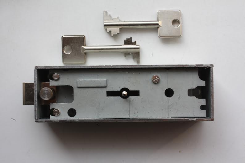 Данный замок открывается двумя ключами. Открывание производится через одно ключевое отверстие - сначала ключом для служащих банка, потом ключом клиента. Ключ для служащих банка не редко бывает одинаковым для всего блока ячеек. Ключ для клиента индивидуален для каждой ячейки.