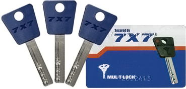 Дубликат ключа к MUL-T-LOCK 7х7 можно изготовить в авторизированных сервисных центрах, предъявив персональную кодовую карточку, что делает невозможным несанкционированное дублирование ключей.